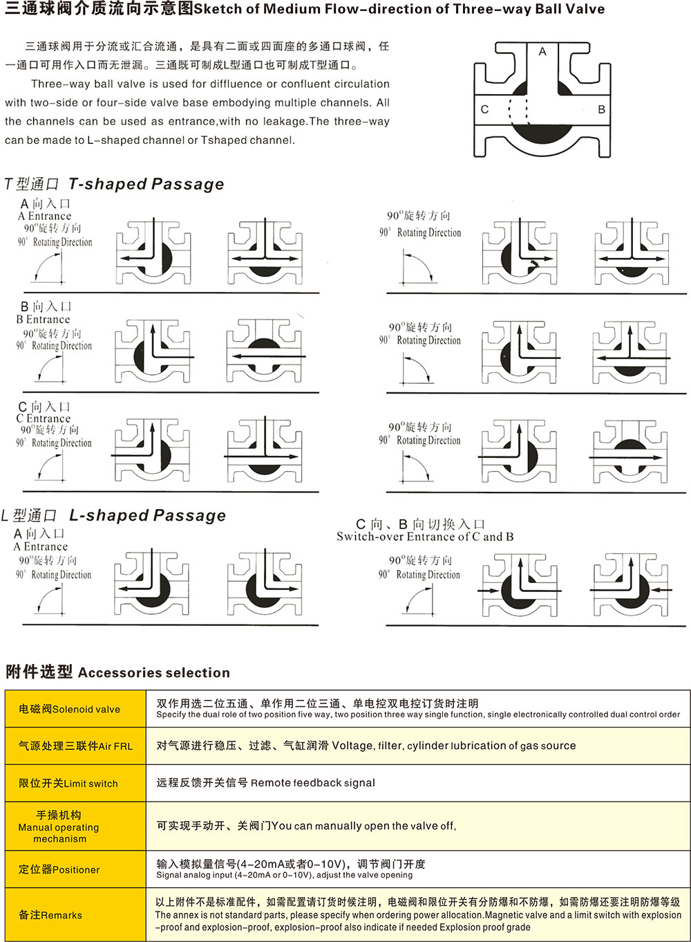 2、L型流道的三通4面閥座球閥,采用2面閥座,受力平衡,保證閉止通道上可靠密封。主要用于流路的換向。