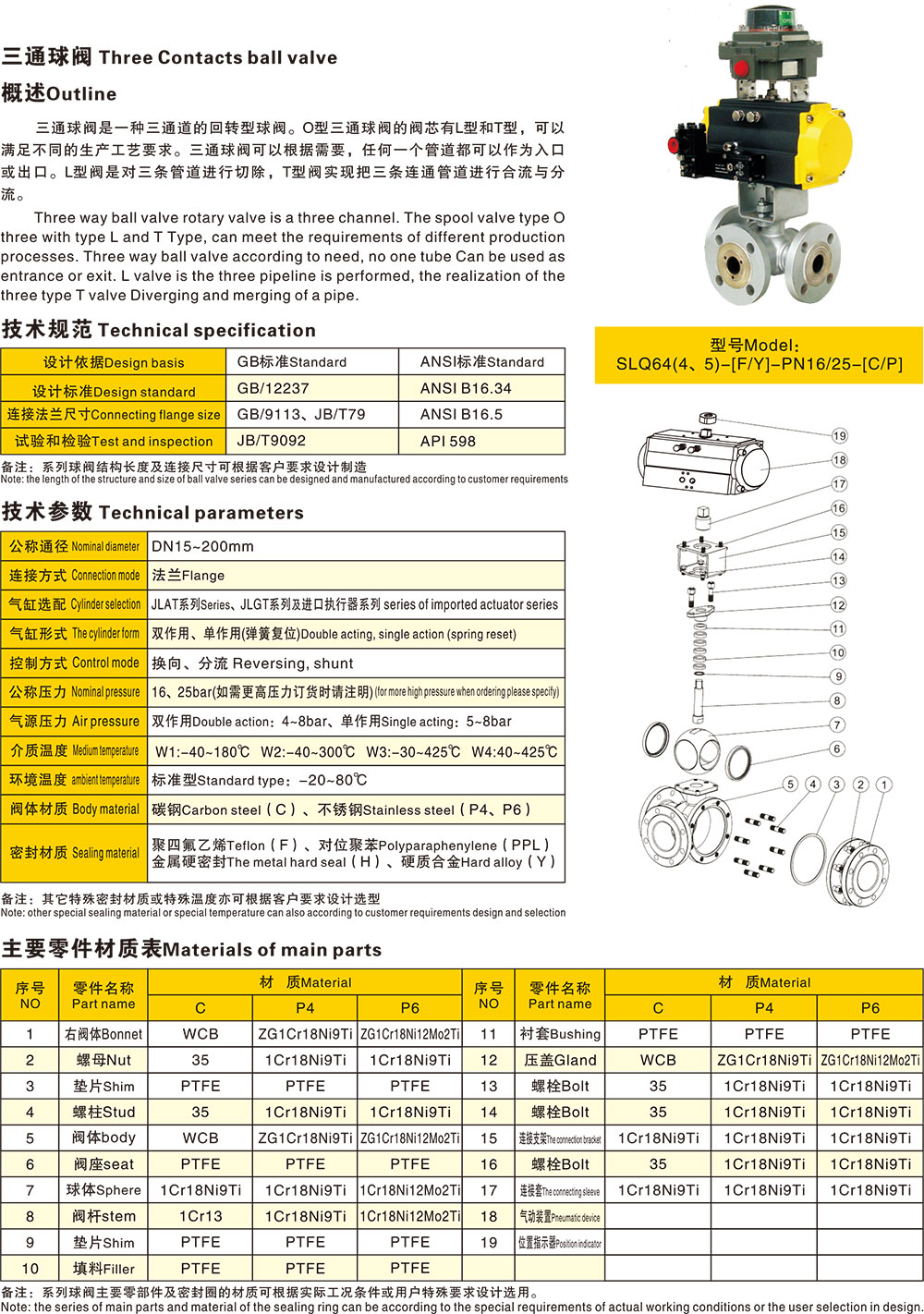 2、主要零件材料:Q45F-16C/P/R,Q45F-25C/P/R,Q45F-40C/P/R