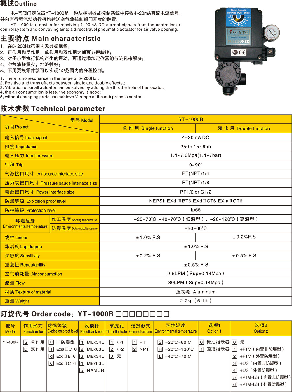 其與氣動(dòng)調(diào)節(jié)閥配套使用,構(gòu)成閉環(huán)控制回路。把控制系統(tǒng)給出的直流電流信號(hào)轉(zhuǎn)換成驅(qū)動(dòng)調(diào)節(jié)閥的氣信號(hào),控制調(diào)節(jié)閥的動(dòng)作。同時(shí)根據(jù)調(diào)節(jié)閥的開度進(jìn)行反饋,使閥門位置能夠按系統(tǒng)輸出的控制信號(hào)進(jìn)行正確定位。